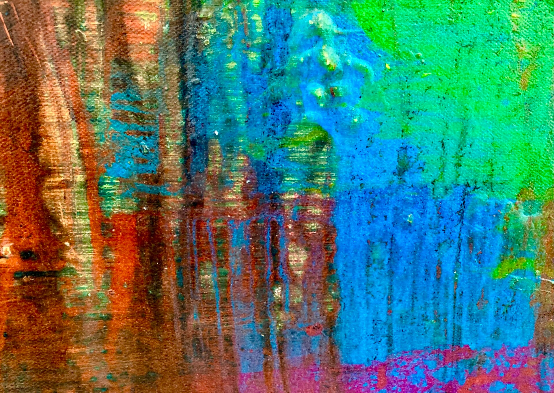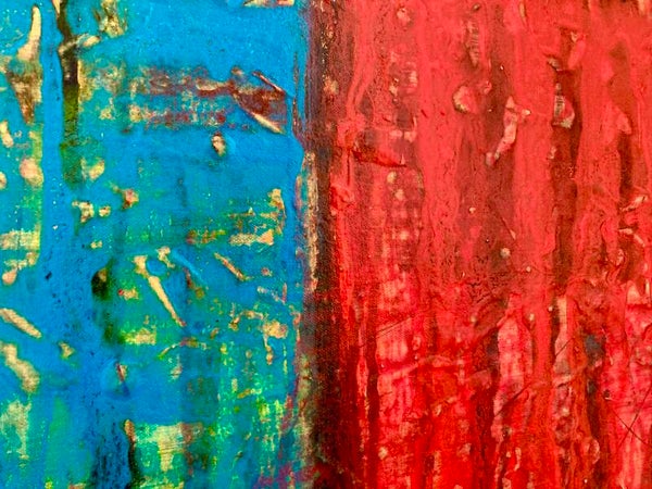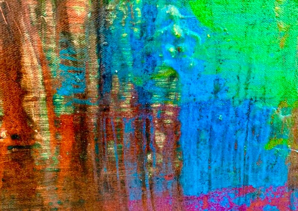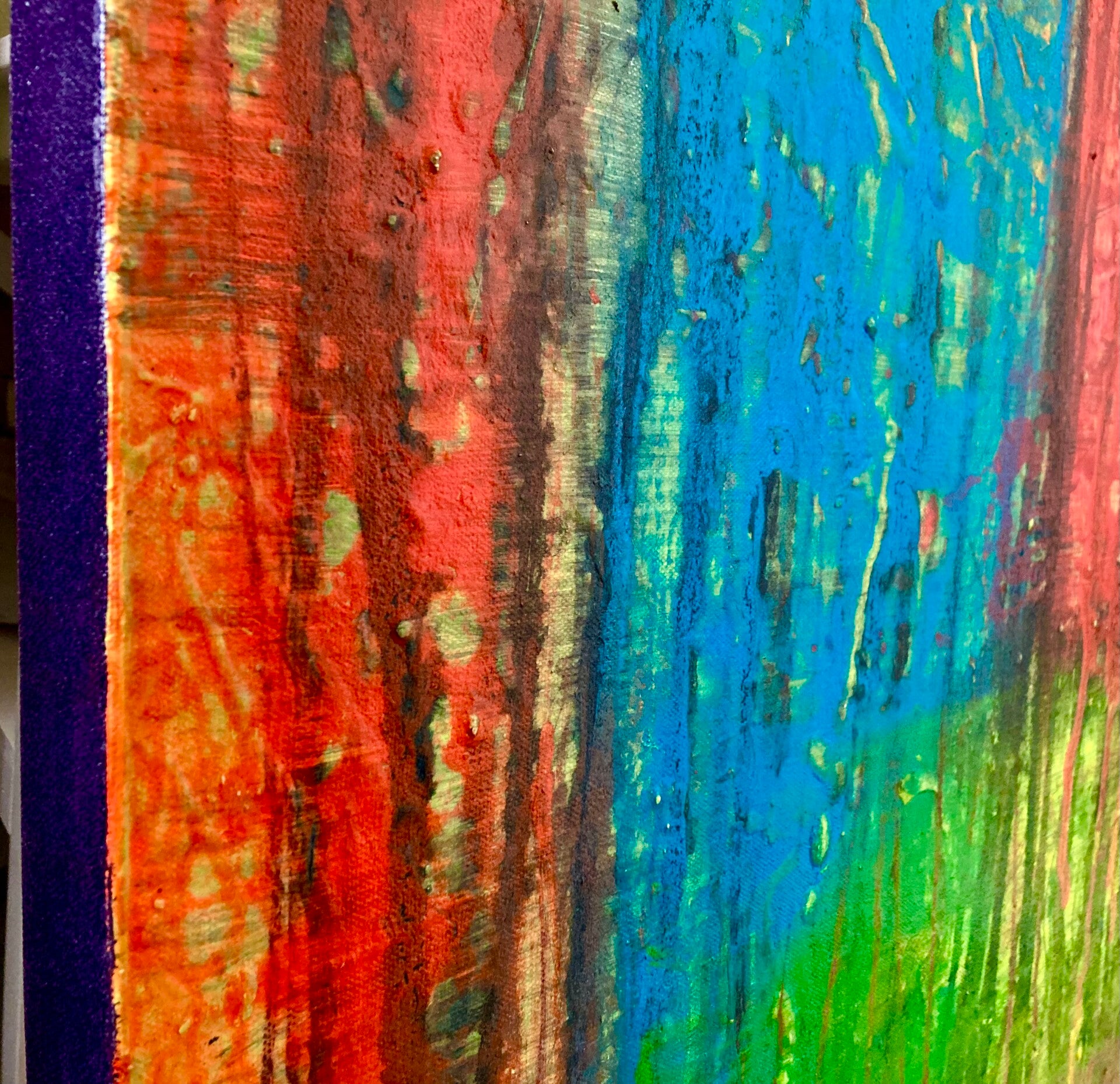 This painting screams big oranges, magentas, blues, and yellows. These acrylic and tempera paints I used in making Cottonwoods are bold, strong colors that pay tribute to the trees and their heritage.